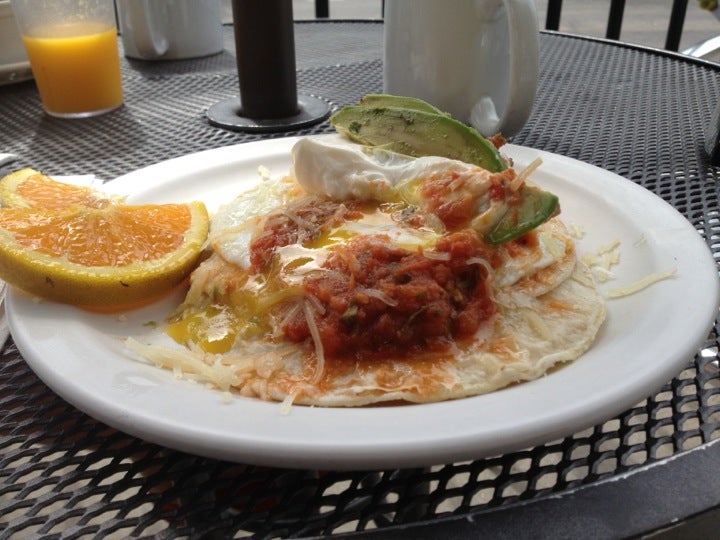 The huevos rancheros, with their runny eggs, beans, and roasted tomato salsa, are available every day until 2pm and always hit the spot. -Heavy Table