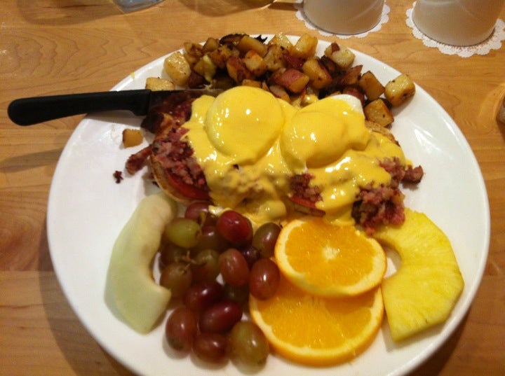Eggs Benedict are great but ask for the fruit on the side. They also give you coffee to go ?? -Andra