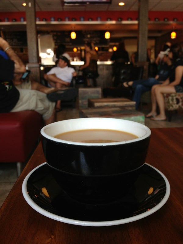 "ancient grains" gluten-free pancakes & a delicious non-dairy latte from the coffee bar are the bomb Sunday brunch treat -Brynna