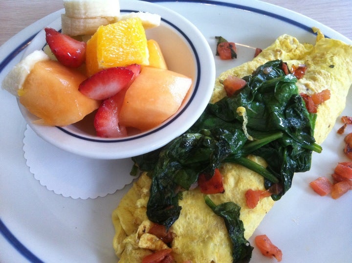Despite the shitty service my friend and I received, the chicken fajita omelette & pancakes were the bomb dot com. Next time, name sure that drinks are served before the food. It wasn't even that busy -Christopher