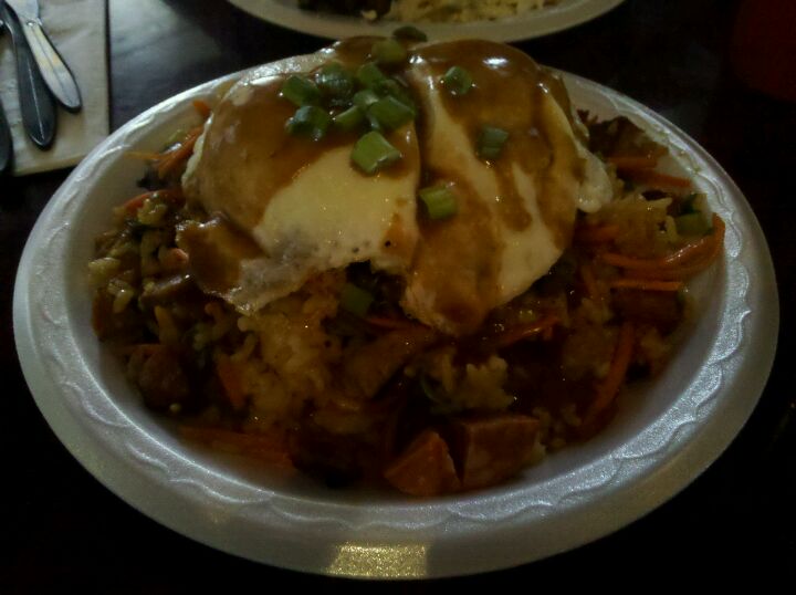 The loco moco rocks and you can substitute Spam. Everything here tastes great, you can't go wrong. -Carl
