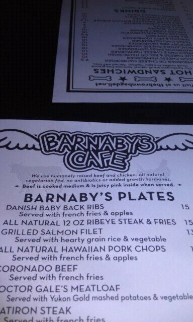 Breakfast is Baby Barnaby's. Same owner different places. -Gerry