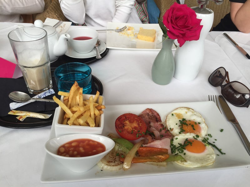 The location is great however there are paper advertisement on the windows that fully block great view. If you look for privacy and calm atmosphere this place is not for you. Food and coffee was bad -bonny_blue