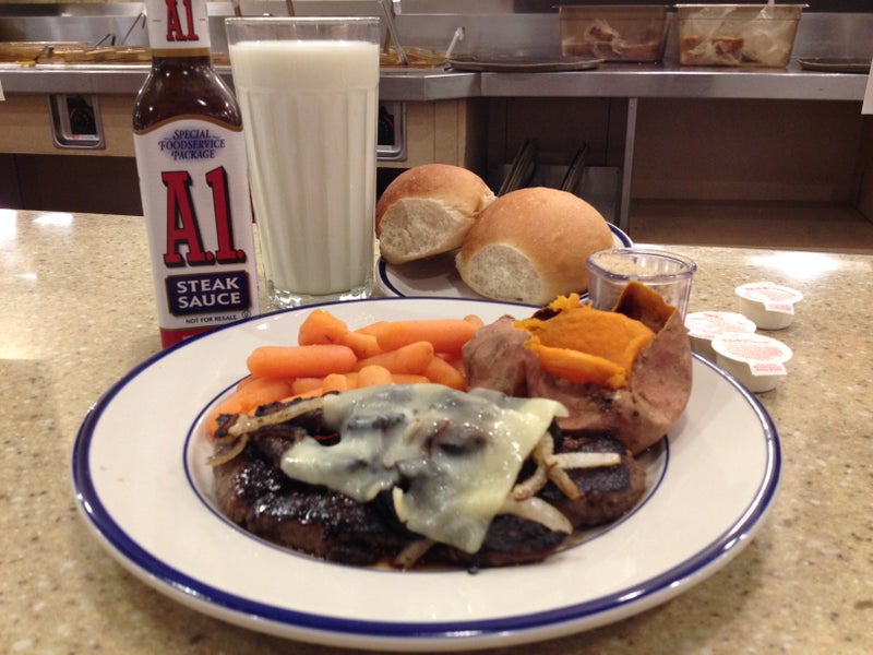 Bob Evans' USDA Sirloin Steak w/ 2 sides (sweet potato & baby carrots) & rolls $ 11.99 (on 3/15/15) -Alex