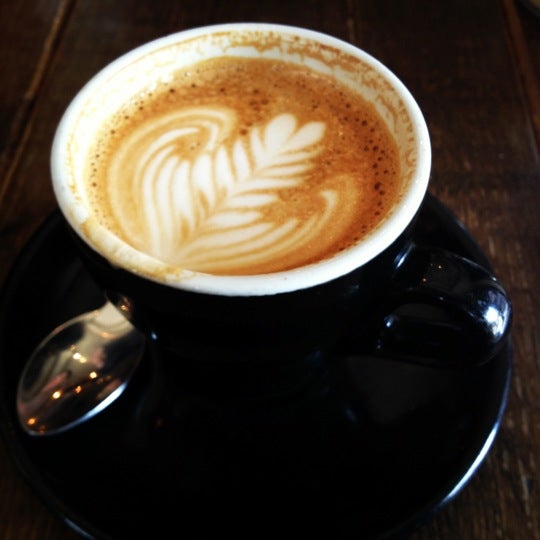 They roast their own coffee here, serve it in smooth black cups and give amazing froth art! Ask for a design du jour. Oxtail and Salt Beef Fritter plate worth a visit on its own. -Katherine