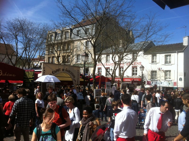 Вид на движуху Монмартра очень романтичен. Официанты просто няшки -Ольга