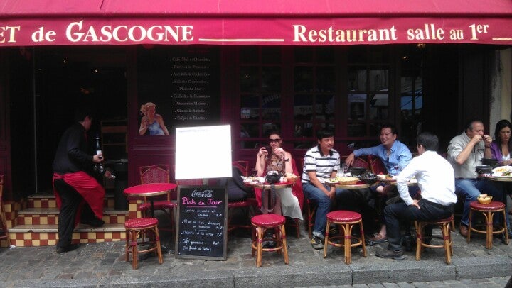К сожалению были не голодны поэтому ничего не попробовали кроме сырной тарелки. Неплохое обслуживание как для туристического места. Вино дороговато - от 26€. Но самое главное атмосфера Монмартра... -Eugene