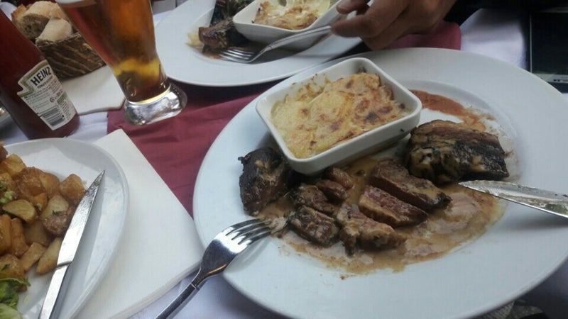 Очень вкусный ростейк в сырном соусе. Утка тоже на высоте. В меню есь лягушачьи лапки:-) 6 шт 12 евро 12 шт 21 евро. Пиво 10.5 евро за 0.5л. Вино около 26-40 евро за бутылку. Живая музыка. -Елена