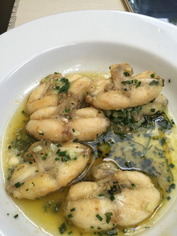 Улитки были пересушены и горчили. Лягушки пресные и безвкусные. А вот луковый суп - выше всех похвал! -Наталья