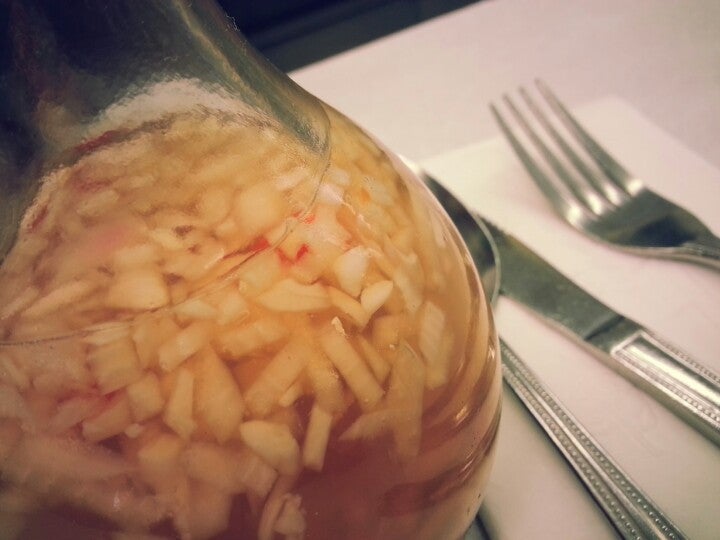Tocino: The exotic eye opener features cooked-to-order eggs, a mound of fried rice, chunks of juicy pork tenderloin showered in tantalizing soy-based marinade and zesty slaw composed. —Warren Rojas -Northern Virginia Magazine