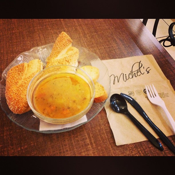 Food was good. Soup and quiche. A bit slow for a cafeteria. Women's washroom needs to be cleaner. -Heather