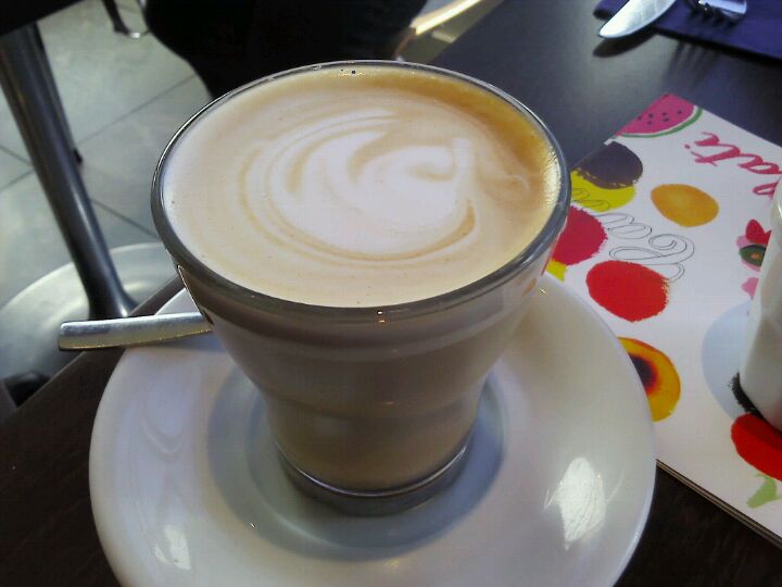 Don't know what a flat white is, gave me a latte. Also, false dichotomy: do you want rich or smooth coffee? Yes, I do. Like it says on your board: Milano blend: rich and smooth, shit for brains. -Dick