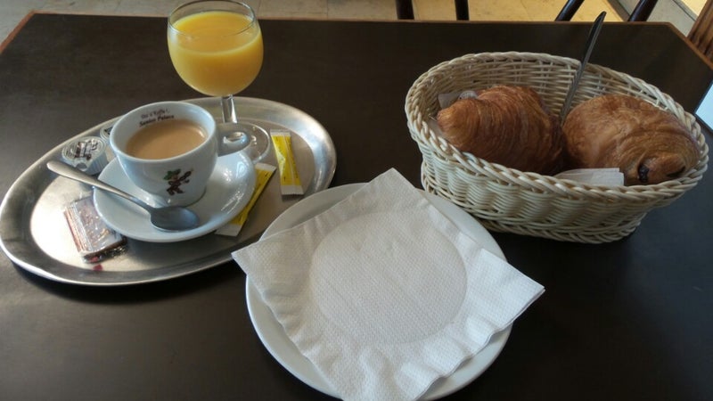 Petit déjeuner correct pour 5,50 EUR. J'y vais de temps en temps depuis près de 20 ans... chouette Veranda quand il fait beau! -Marie-France