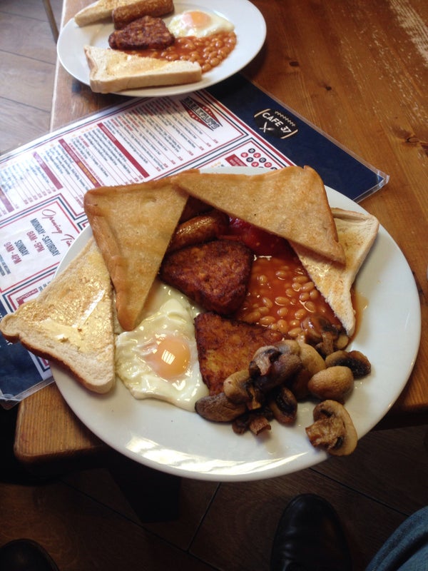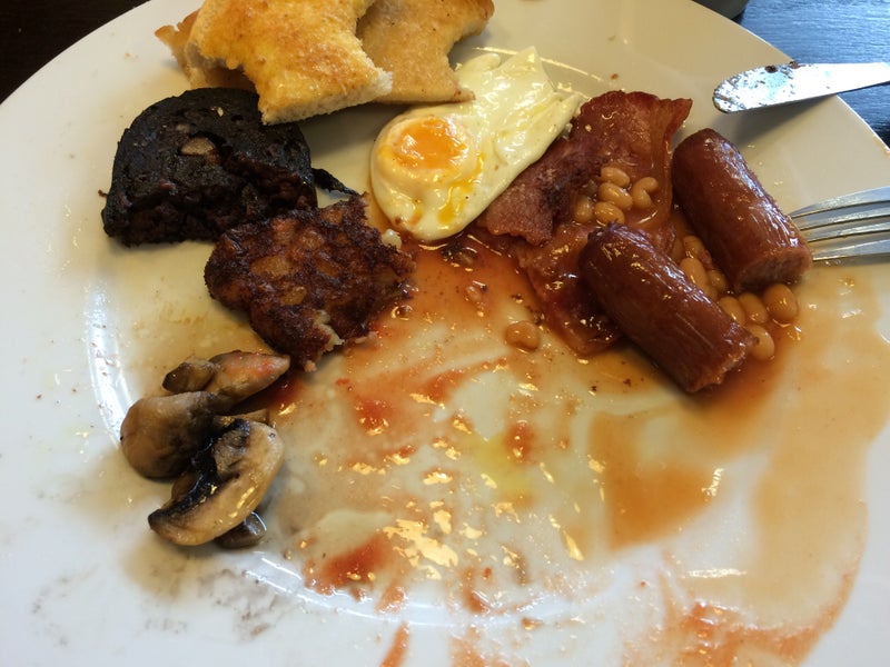 Order: American breakfast, bacon (extra crispy), plus an egg (over easy). TOP TRANSATLANTIC SCRAN! -Chris