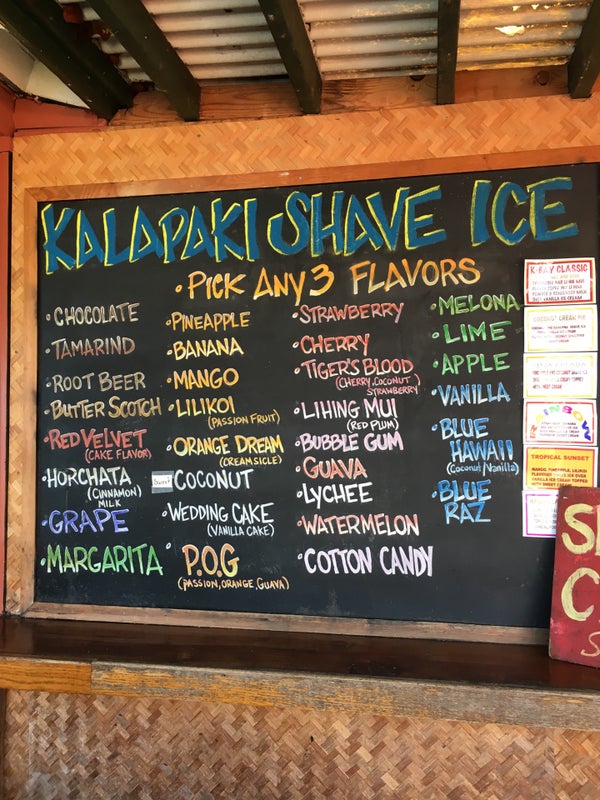 Get the Hawaiian Style Shave Ice!! With Hawaiian fruit flavors, vanilla ice cream, and condensed milk...it's absolutely perfect! -Andrea