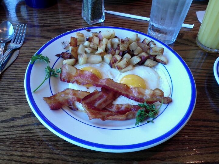 If you aren't very hungry, may I recomend the Country Bisquit breakfast? It's one egg, sausage, gravy, and cheese on one biscuit. Choose either potatoes or grits. It's my fave. -Barbi