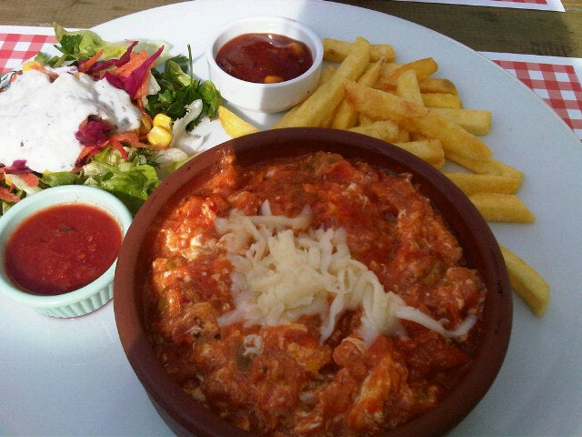 Mekanın şirinliği bizi yanılttı.Yağmurdan kaçarken doluya tutulduk.Kiremitte mantarlı kaşarlı köftesi kötü ötesi kiremitte pişmeyen Buz gibi ve sonradan ketçap ile sos yapılarak kiremite konmuş geldi. -Sevgi