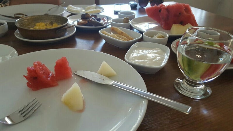Yine bir kahvaltı yine bizz???? Yumurta 10 numara 5 yıldız✌????️✌???? Kışın verilen portakal suyu yerine yaz konsepti karpuz kavun eklemişler..İlgi alaka da eskisi gibi perfectoo..???????? -Seda
