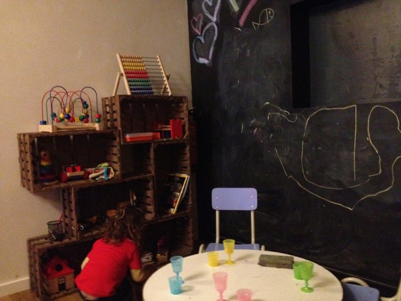 Very kids friendly. Toys and black board wall for chalk drawing in the back. WiFi: CAFEGODOT -natasha