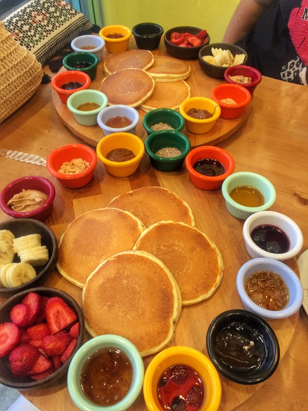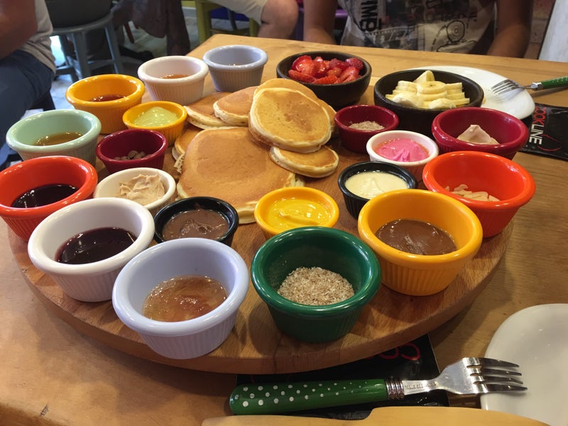 ABD'de Yaygın olan pancake rest ufak bir örneği, yetiştirmede sorun yaşadıklarından sadece sade yapıyorlarmış, tatlı kahvaltı için iyi bir seçenek. Ücretlendirme pancake üzerinden, sos sınırsız. -Mehmet