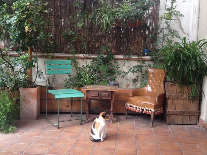 Tenen un gat a la terrassa!! Molt sociable, se't posa a la falda si et ve de gust. El més semblant a un catcoffe. -Marta