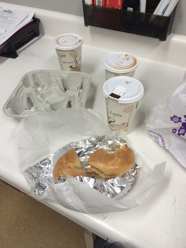 Great bagels and sandwiches. $10 minimum fir credit cards and coffee refills are $1. -Steven