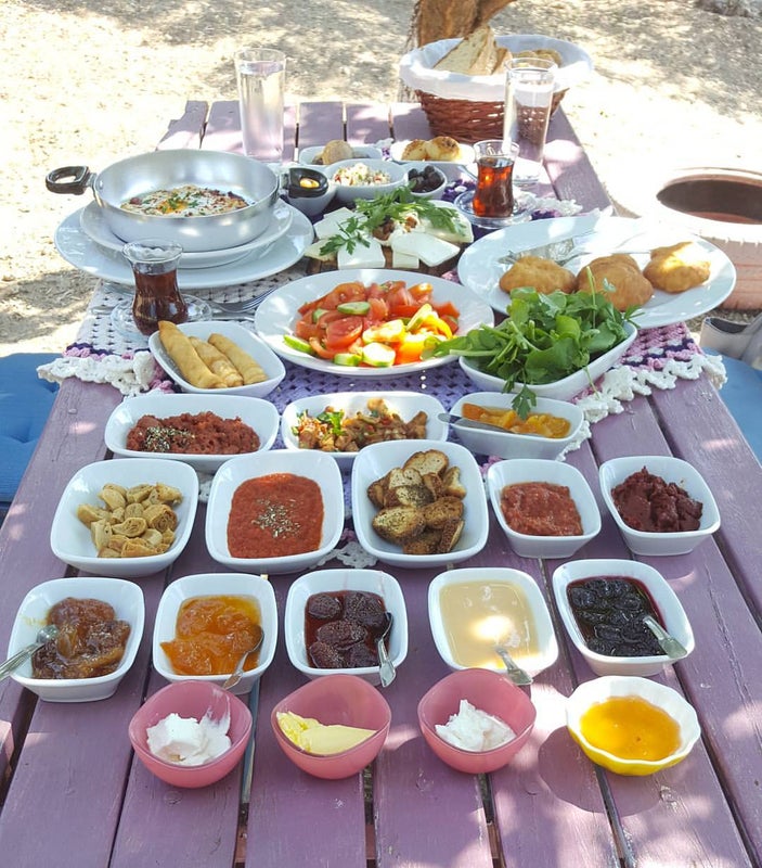 Çok çeşitli yiyecekler geliyor, sınırsız çay rahat güzel bir kahvaltı ortamı ağaçların içinde ve güzel işletmeciler. Kahvaltıda sunulanlar baya lezzetliydi. Fiyatlarda güzel. -Özant