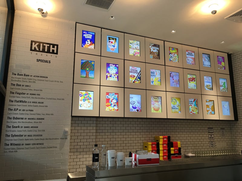 Located in the front left portion of store. Really hyped cereal bar, many choose from and served in a shoe box. The cereal swirl is like a elevated McFlurry, you choose your cereals and toppings. -Tommy