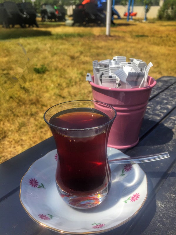 Baktık olacak gibi değil tatlıları uzak bir masaya koyduk.Yinede arılar uçuşup durdu masamızda.İşletmecinin bu durumu uyarması lazımdı ondan önce bu durumu çoktan halletmesi gerekirdi. -zeki